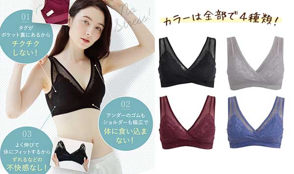 サイズ、色の展開も豊富なので自分に合った育乳ブラが選べる♪